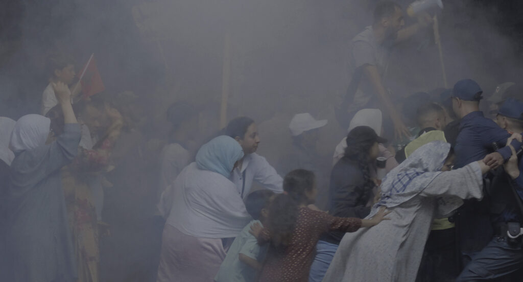 Jerada est une ville minière au Maroc où l’exploitation du charbon, bien que officiellement arrêtée en 2001, se poursuit de manière informelle jusqu’à aujourd’hui. L’mina reconstitue le travail actuel dans les puits en utilisant un dispositif de décor conçu en collaboration avec les habitant·e·s de la ville, qui se mettent en scène dans leur propre rôle.